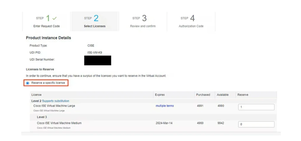 پس از انتخاب تعداد و نوع لایسنسها در پورتال، یک Authorization Code صادر میشود که دوباره به ISE بازگردانده و بارگذاری میکنید.
