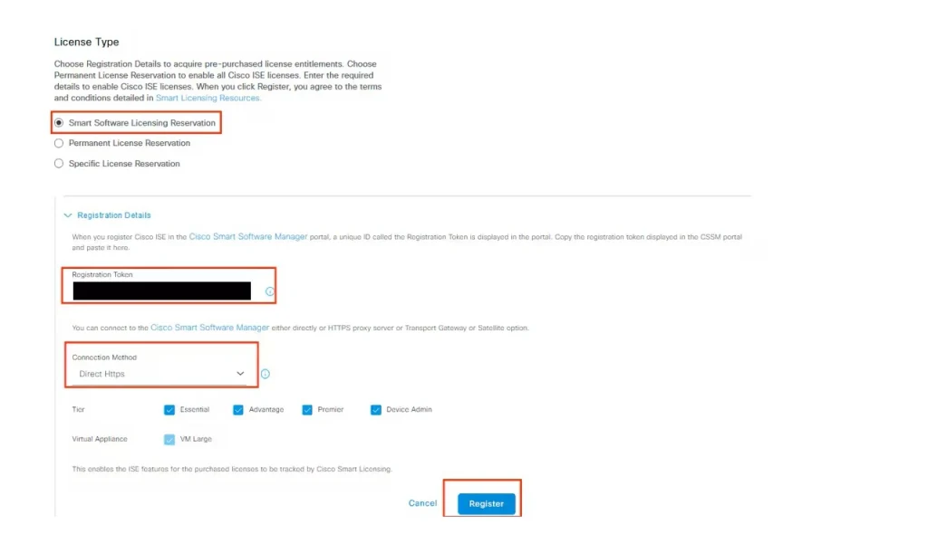سادهترین روش، اتصال مستقیم ISE به CSSM است. کافی است در پنل مدیریتی مسیر Administration > System > Licensing را باز کنید، یک Registration Token وارد کنید و Connection Method را روی Direct HTTPS بگذارید. پس از ثبت موفق، ISE بهصورت خودکار با CSSM همگام میشود.